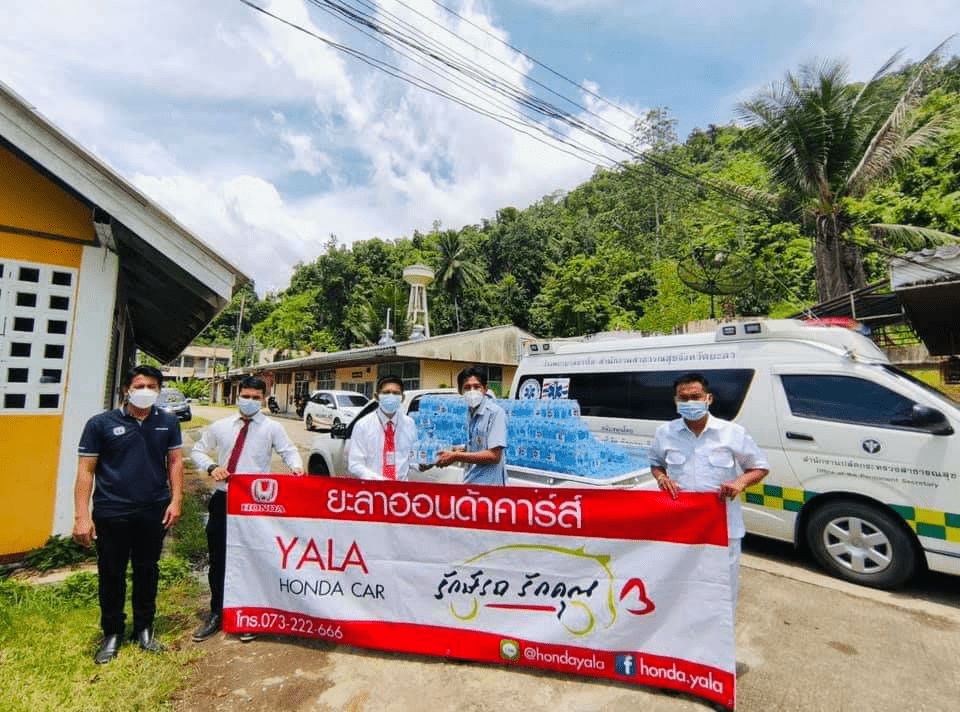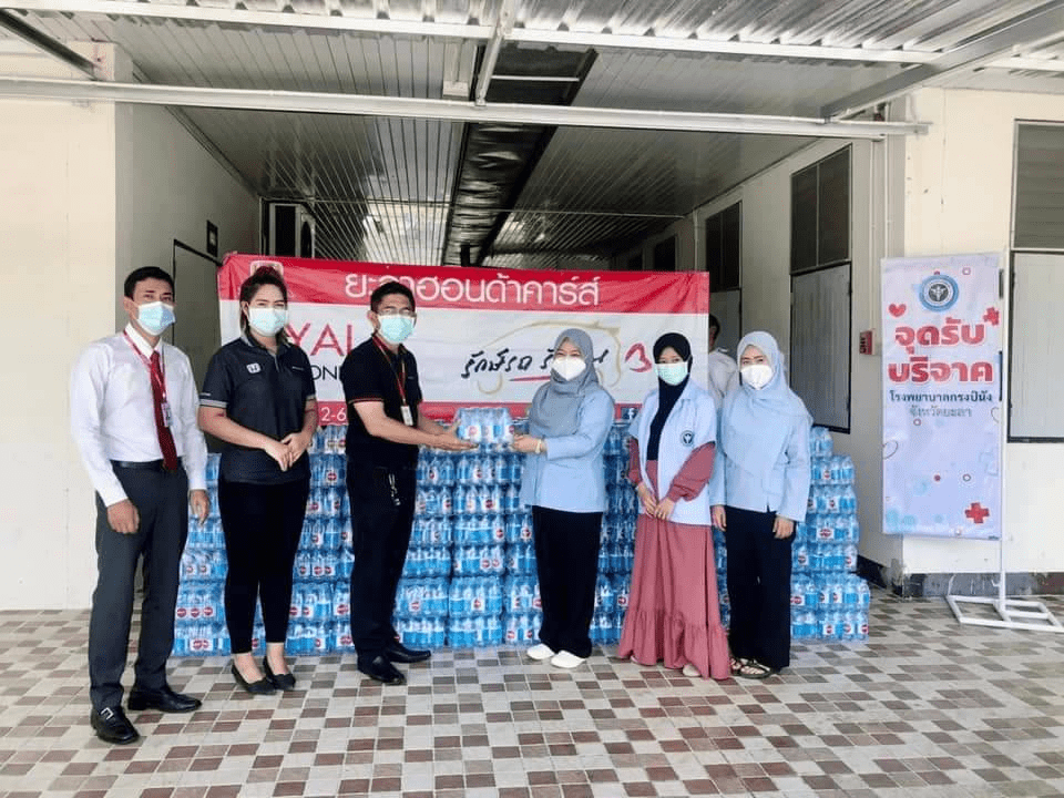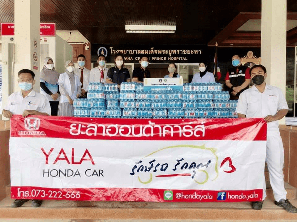 บริษัท ยะลาฮอนด้าคาร์ส์ จำกัด บริษัท อัครพันธุ์ก่อสร้าง จำกัด และ บริษัท ศิลาอุตสาหกรรม จำกัด บริจาคน้ำดื่มให้แก่ 4 โรงพยาบาลในเขตจังหวัดยะลา เพื่อช่วยเหลือผู้ป่วย